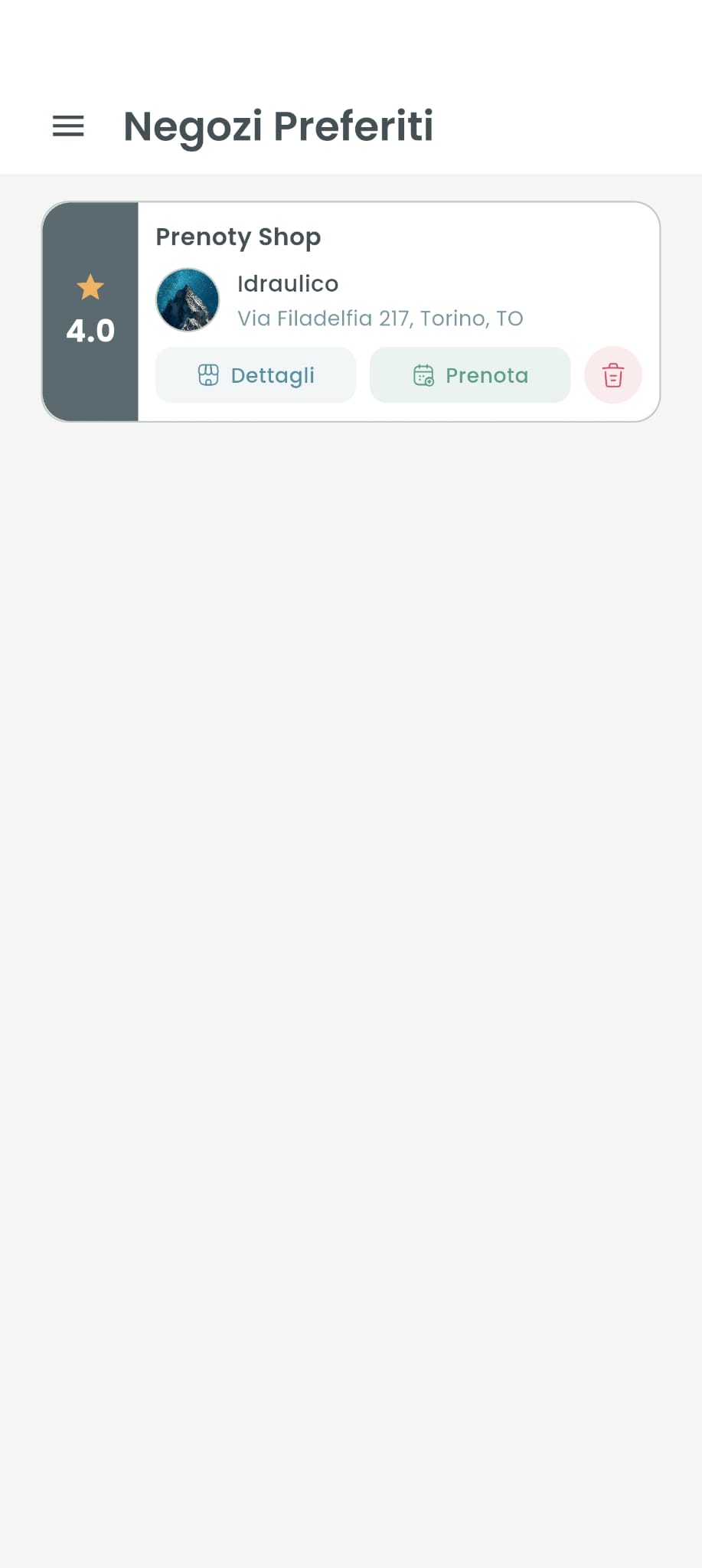 Vai alla sezione Preferiti dal menu principale. Troverai la lista di tutti i negozi che hai salvato, con:
