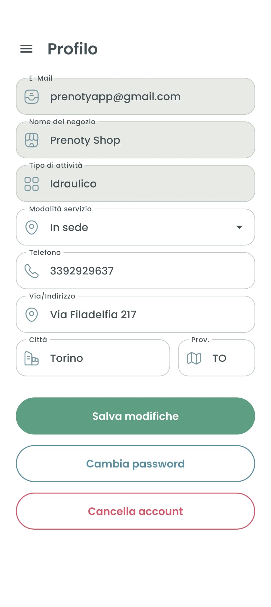 - Apri l'app Prenoty