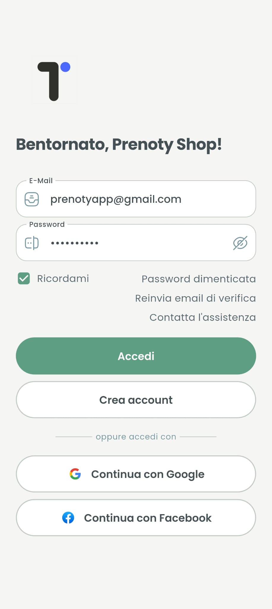 Creare un account Prenoty è semplice e veloce. Puoi registrarti con email e password oppure accedere tramite Google o Apple.